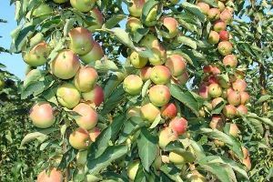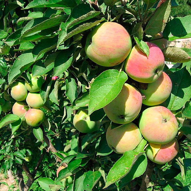 Яблука досить великі для такого невеликого дерева. В середньому по 200 г. За формою округло-плескаті, що нагадують форму ріпи. Плоди жовто-білого забарвлення і з рожевим рум'янцем дуже привабливого вигляду. Мають тонку, блискучу, але істотно щільну шкірку. Дрібнозерниста м'якоть кремового кольору дивує десертним смаком, яскраво вираженим ароматом і дегустаційною оцінкою 4, 8 - 5 балів.