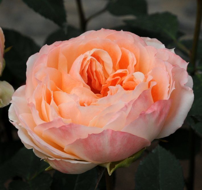 Японська садова троянда отримала свою назву на честь спадкової японської принцеси і в перекладі означає «коханий» або «дитина кохання». Завдяки ефектному півоноподібному бутону і ніжному персиково-рожевому з кремовими відблисками забарвленню вона стала однією з флористичних новинок, що найбільш запам'ятовуються, 2018 року. Краї внутрішніх пелюсток загнуті всередину квітки, діаметр якої 8-10 см, 90-120 пелюсток в одній квітці. Розкривається не повністю, приблизно на 80 відсотків, зберігаючи свою прекрасну чашоподібну форму. Квітка не має яскраво вираженого аромату, але легко компенсує це красою та елегантністю. Цвітіння: рясна, безперервна, квітки поодинокі або в невеликих кистях. Висота куща 80-120 см, ширина 60-70 см. Стійкість: до захворювань хороша, морозостійкий сорт (USDA: 6 зона). Півоноподібні троянди Принцеса Айко стануть виразним подарунком незалежно від приводу, вони розкішно виглядають у монобукеті з 9 і більше штук, поєднуються з півонії, кущовими трояндами, зеленню та декоративними ягідками. Стійкість у вазі до 10 днів.