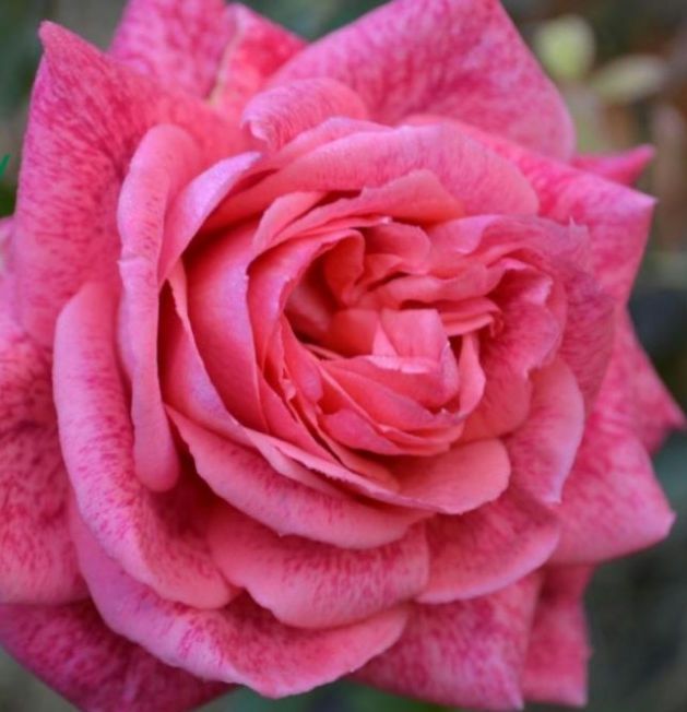 Бутони темно-рожево-коралового кольору з фіолетовими вкрапленнями, дуже вишукано виглядає в поєднанні із зеленим листям. Квіти великі досягають 10-12 см у діаметрі і складаються з махрових 17-25 пелюсток.