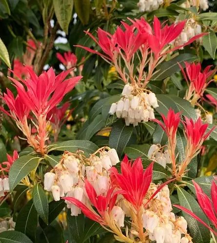 Пієріс Mountain Fire до сімейства Вересових, широко поширена в Азії і Північній Америці. Зазвичай, всі види пієриса мають червоне або рожеве забарвлення молодих гілочок, що є однією з причин їх популярності в ролі садових і оранжерейних культур. Також, кущ цінується за декоративні характеристики своїх квітів, що нагадують дрібні квіти конвалії. Саме сорт Моунтейн Файа (Mountain Fire) вважається одним з найкращих сортів, завдяки своєму молодому яскраво-червоному листю, яке поступово змінює колір та стає насичено зеленим. Квітне рясно в квітні, а нові листочки з'являються через 3-4 тижні від початку цвітіння. Кущ потужний, росте повільно, до 10-ти років здатен досягти 120 см висоти і 90 см ширини, потім доростає до висоти 200 см.