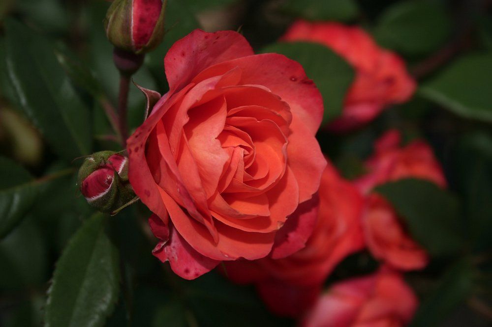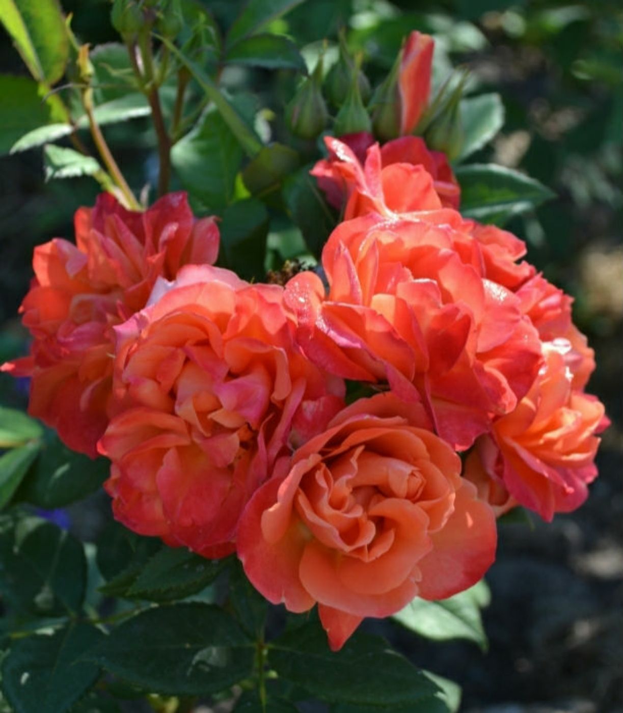 Троянда Революшн (Revolucion) - створить в саду яскравий вибух кольору і буде радувати вас прекрасним цвітінням! Ця новинка дійсно може бути названа «революційною» - троянди кольору вогню з відтінками помаранчевого, жовтого, червоного. Відмінно тримає свій яскравий помаранчово-червоний колір, практично не вигоряє до кінця життя квітки, а квіти навіть з першого цвітіння тримаються більше тижня.Діаметр квітки 8 см. Кущ густий, акуратною форми, висотою 80-100 см, стебла прямі, міцні, ширина куща до 60 см. Листя темно-зеленого відтінку, глянцеві, надають особливу родзинку. Підходить для створення незабутніх квіткових клумб. На одному пагоні утворюється відразу кілька чарівних бутонів, розпускаючись чарує апельсиново-червоним відтінком.Колір помаранчевий, в прохолодну погоду більш насичений. Квітки середнього розміру, махрові до 25 пелюсток, цвітуть дуже рясно весь сезон. Квіти добре переносять дощ і довго зберігаються на сонці. Сорт морозостійкий, тому навіть в холоди троянда Революшн буде радувати ваш погляд, до того ж восени забарвлення квітів стає ще більш інтенсивної і світиться.