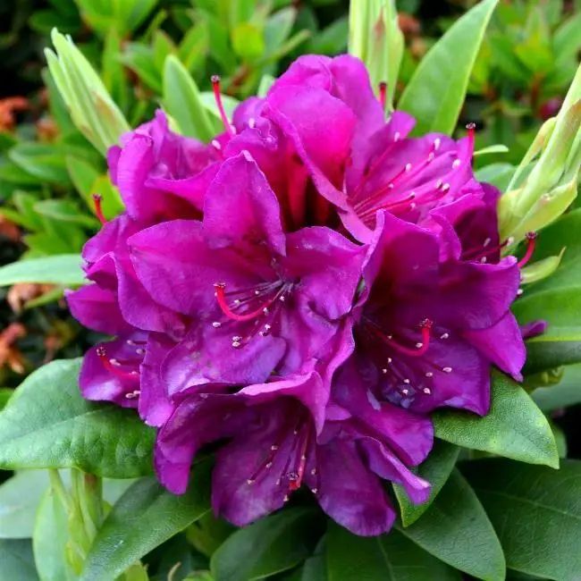 "Полярна ніч" саме так у перекладі звучить назва цього сорту з темно-бордовими, майже чорними бутонами. Квіти, розпускаючись, стають бордово-фіолетовими з бордовим крапом на верхній пелюстці. Вони зібрані в кулясті суцвіття по 10-15 шт в кожному. Росте повільно, набуваючи компактну, округлу форму крони. Листя еліптичні, довжиною 10-12 см, темно-зелені. Віддає перевагу добре дренованим, кислим грунтам. Для рясного цвітіння та закладання квіткових бруньок на наступний рік, рекомендується вчасно видаляти відцвілі квіти та суцвіття. Ефектно виглядатиме як в одиночних, так і в групових посадках. Морозостійкий.