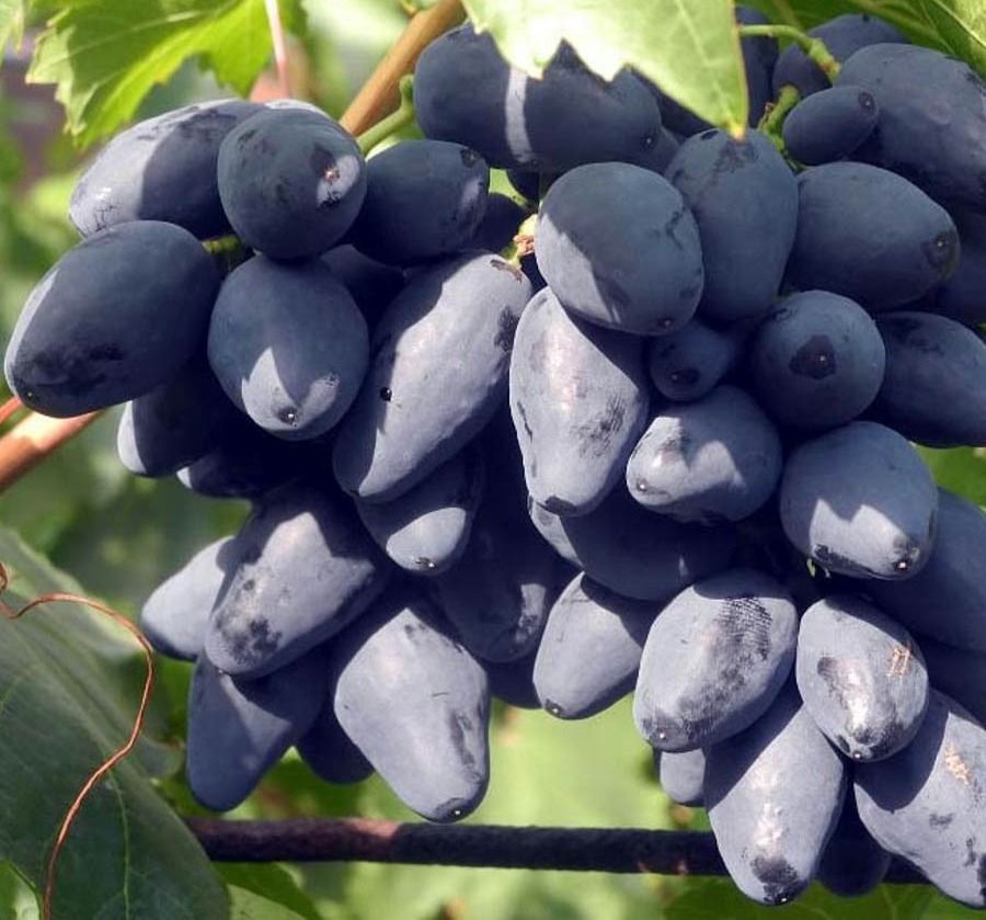 Ягода дуже красивою ромбічної форми, темно-фіолетового, практично чорно кольору і пруіновим нальотом середньої густини. Вага ягід коливається в середньому 8-10 грам, що є дуже хорошим результатом, як для ультрараннього винограду.