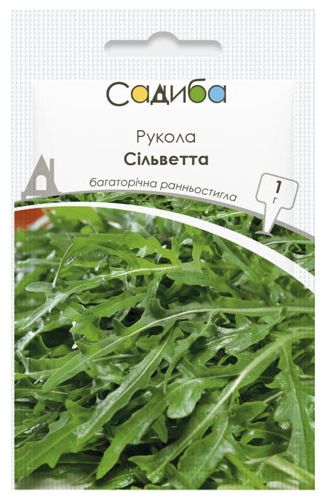 Рукола Сільветта - ранньостиглий (25-28 днів) сорт для відкритого й закритого ґрунту. Рослина швидкоростуча, з гладкими хвилясто-виїмчастими, розсіченими листками, довжиною 10-12 см, зібраними в напівпідняту розетку. Врожайність листя 1,8-2,8 кг/м2. Рослина багаторічна, добре перезимовує, забезпечуючи врожай на другий рік, невибаглива до умов вирощування, після зрізання швидко відростає. За пряний гірчично-горіховий, ароматний з легкою гостринкою, смак високо цінується кулінарами-шанувальниками італійської кухні.