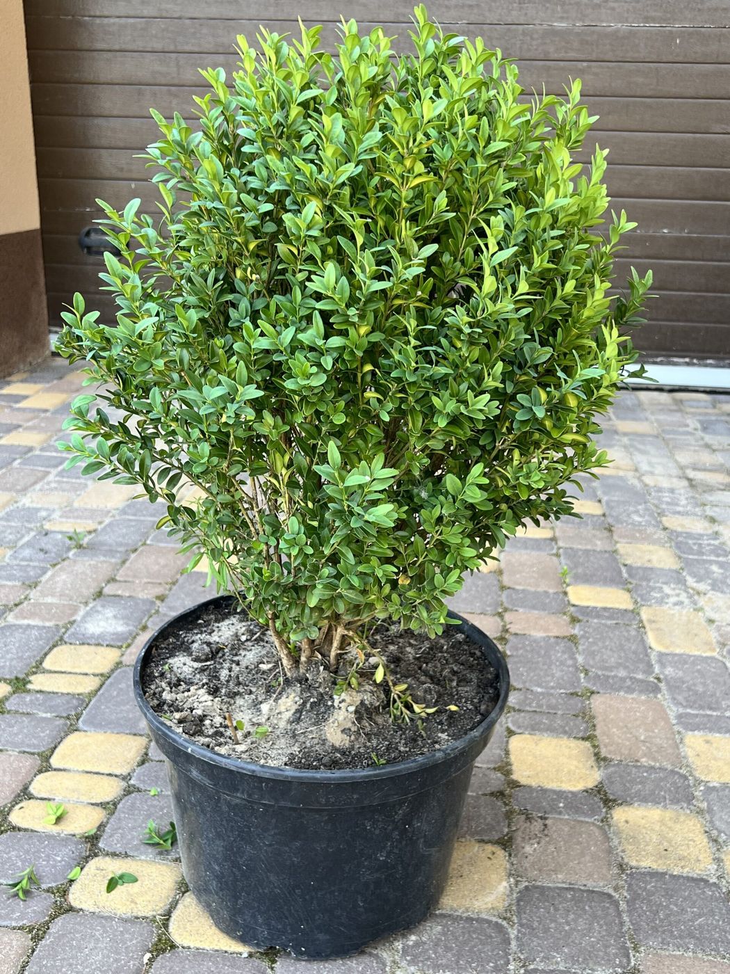 Самшит вічнозелений є чагарником, який відносять до сімейства Самшитових. Гілки у рослини стирчать, прямі і груболисті. Квітки збираються в пазушні суцвіття, вони одностатеві, невеликі та випромінюють приємний аромат. Восени на кущиках з'являються плоди у вигляді тригніздної коробочки, яка під час дозрівання розтріскується, і з неї висипається насіння чорнильного кольору. Він досить повільно росте, досягає у висоту 12 м, в середньому за рік приріст становить від 5 до 6 см. Садівники воліють висаджувати самшит не тільки через його високі декоративні показники, але й тому що йому властива морозостійкість.