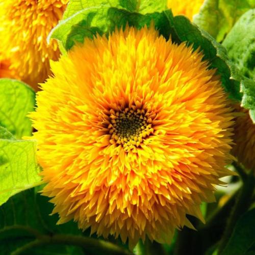 Соняшник Ведмедик Тедді — симпатична весела однорічна рослина, яка завжди викликає посмішку. Висота стебла - 60-80 см. Квіти — подвійні, махрові, золотисто-жовтого кольору, діаметром 15 см. Дуже легко вирощується. Надає перевагу легким і поживним ґрунтам та сонячним місцям, захищеним від вітру. Має чудовий вигляд в групових посадках на клумбах, рабатках і квітниках.