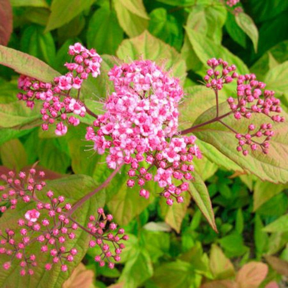 Спірея японська Макрофілла це розлогий чагарник напівкулястої форми, з піднятими гілками висотою до 1,5 м. Завдяки красивозабарвленому листю, цей сорт декоративний протягом усього вегетаційного періоду. Спірея Макрофілла добре росте у міських умовах. Сорт невибагливий, морозостійкий. Висота дорослої рослини 1,3-1,5 м. Річний приріст близько 20-25 см. Квіти дрібні, рожевого кольору, зібрані в плоскі суцвіття-щитки, що утворюються на кінцях пагонів цього року. Час цвітіння: червень-липень.