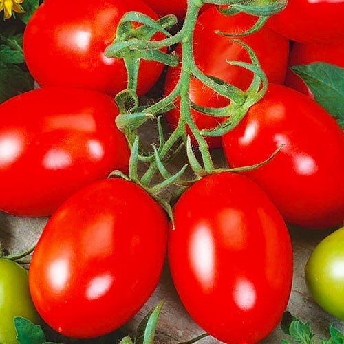 Ранньостиглий, з періодом дозрівання 110-120 днів. Рослина детермінантна. Суцвіття напівскладного типу. Плод сливоподібний, червоний, гладкий, масою 65-80 г, відмінних смакових якостей. Призначений для використання у свіжому вигляді і цілоплідного консервування. Відносно стійкий до хвороб.