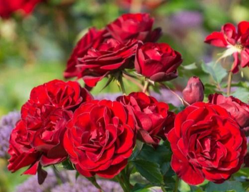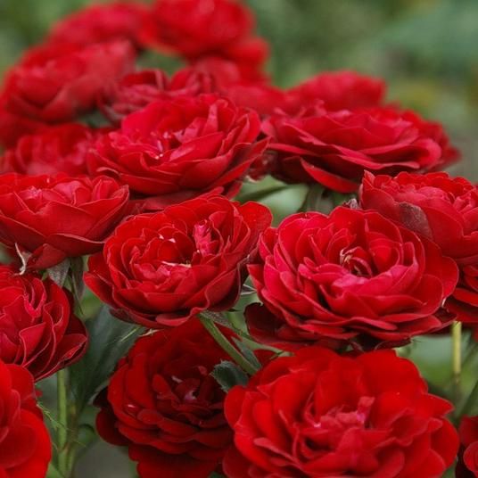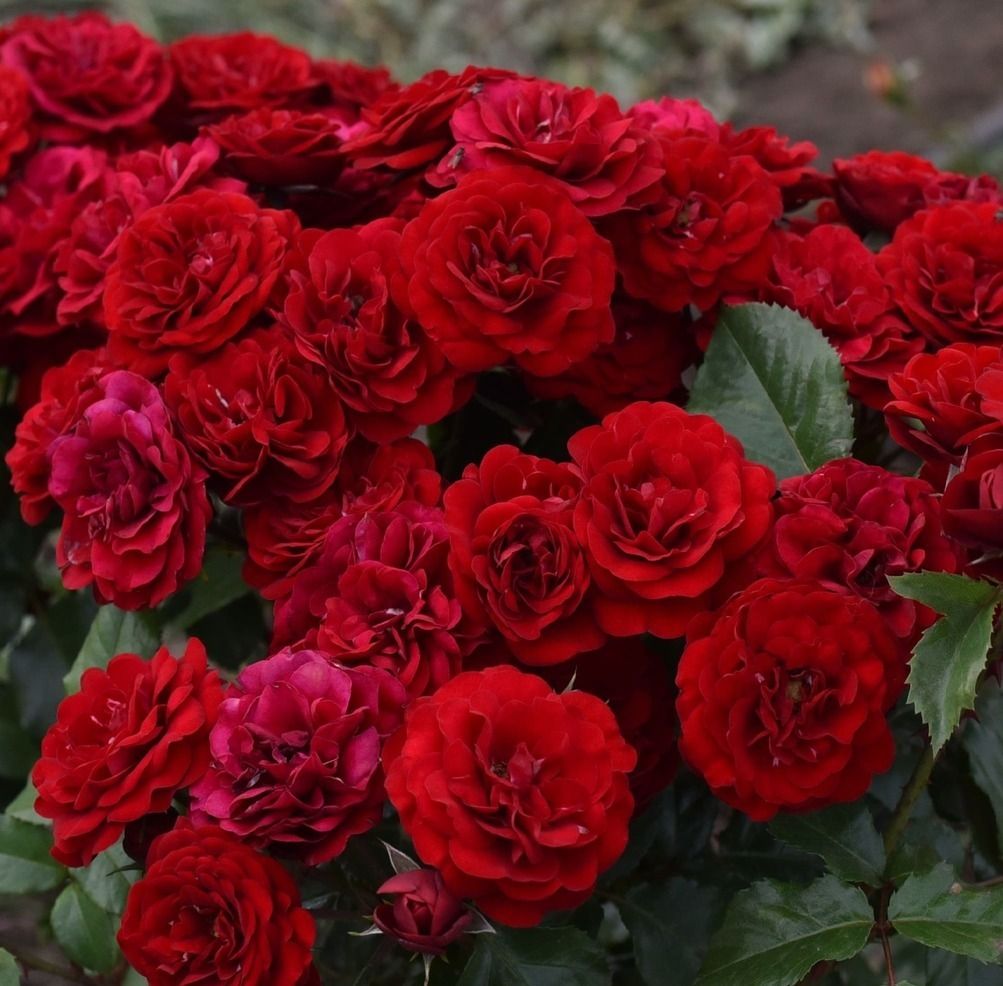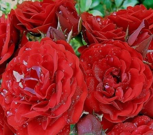 Троянда Торнадо виведена Kordes Німеччина, 1973 року, Ця яскрава рясно квітуча троянда цвіте великими кистями напівмахрових квіток, які з'являються на коротких жорстких гілках на гіллястому прямокулячому кущі. Квітки густо-махрові великі, до 6-8 см із красивими червоними оксамитовими пелюстками. Цвітіння рясне, повторне з травня по жовтень. Квітки зібрані у кистях по 3-15 шт і розкриваються повільно. Аромат слабо виражений. Кущ середньо-рослий до 80 см, ширина до 50 см. Лист дрібний, темно-зелений, здоровий. Стійкий до основних захворювань +++. Цей сорт володар багатьох міжнародних нагород.