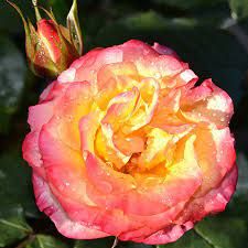 Тропікал Клементин (Tropical Clementine) – дуже яскравий сорт троянди патіо. Назва ідеально відповідає тому, як виглядає троянда, просто тропічне буйство фарб – яскраво-зелене листя, пелюстки жовті з червоним. І як завершальний штрих – легкий аромат тропічних фруктів із явно відчутною ноткою лимона! Цей чарівний біколор можна вирощувати і в контейнері, щоб прикрасити цією життєрадісною квіткою балкон, веранду або улюблене місце відпочинку в саду. Троянда патіо відмінно росте і у відкритому ґрунті – з використанням низькорослих сортів троянд можна створювати дуже гарні композиції. Наприклад, дуже здорово поєднуються в ландшафтному дизайні троянди та барбариси з їх червоними плодами та червоним листям.
