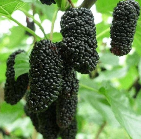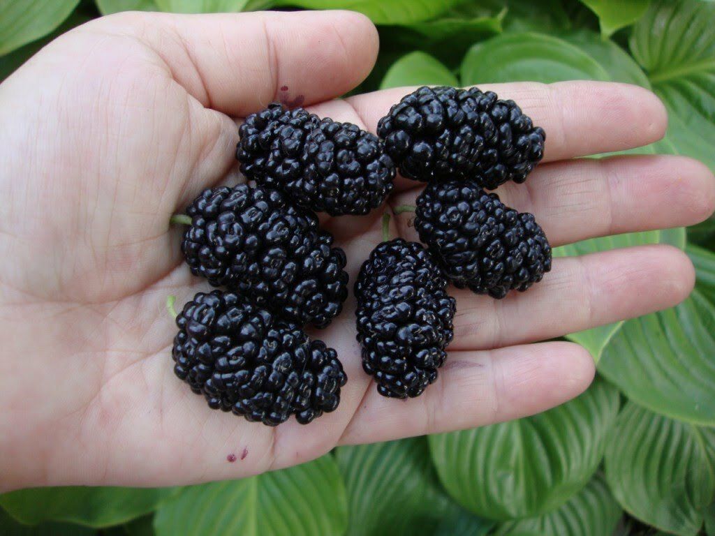 Шовковиця Турецька чорна - сорт з незвичайно великими для шовковиці плодами - ягоди можуть досягати п'яти сантиметрів. На вигляд вони чорні, блискучі. Смак з солодкими нотками, дуже приємний. Турецька чорна дає дуже рясний урожай - з однієї рослини можна зібрати до 35 кг ягід. Саме дерево виростає до 4 метрів, має широку кроною. Листя дуже великі, мають асиметричну форму з тупими зубчиками по краях. Цвіте рослина в квітні, урожай дає в липні.