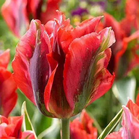 Тюльпан Hollywood (Голлівуд) вигідно виділяється на тлі інших тюльпанів. Складно повірити, що природа створила таку красу. Бутон з гофрованими пелюстками бордово-червоного кольору з зеленими смугами посередині змушує захоплюватися собою і дозволяє створювати просто фантастичні композиції. Цвіте тривалий період з кінця квітня і практично до середини червня. Висаджується на відкриту ділянку, захищену від вітру, в легкий нейтральний або слабокислий ґрунт. Тюльпан стане прикрасою вашого саду або центром композиції на клумбі.