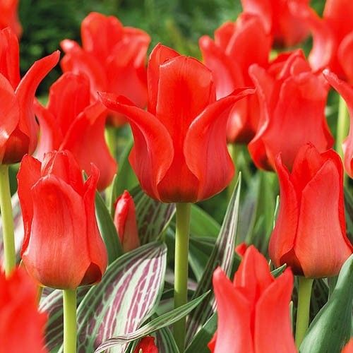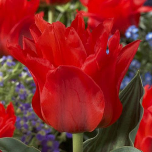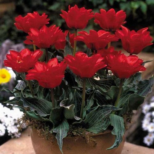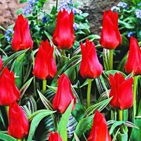 Тюльпан Double Red Riding Hood відноситься до низькорослих типів дикорослих тюльпанів. Його висота не перевищує 25 см. Квітка велика, з широкою основою келиха. Пелюстки овальні із загостреними кінцями, які злегка відхилені назовні. Колір – яскраво-червоний. Цвітуть такі тюльпани наприкінці квітня-початку травня. Відмінною рисою даного сорту є листя, яке гармонійно прикрашене поздовжніми штрихами та темно-червоними смугами.