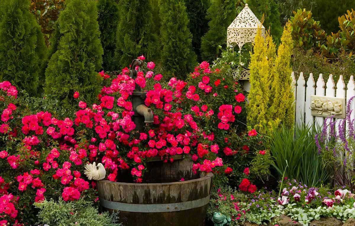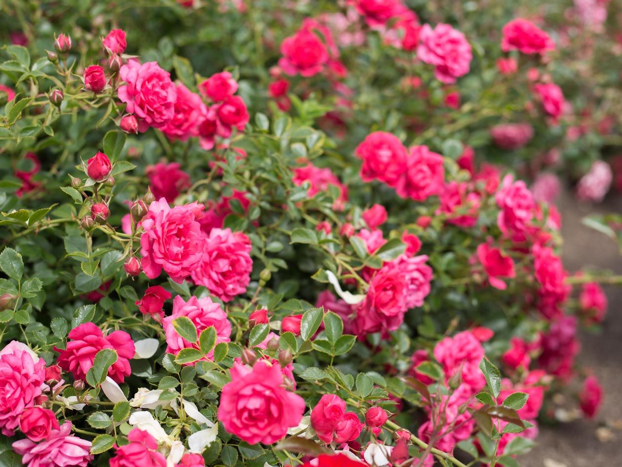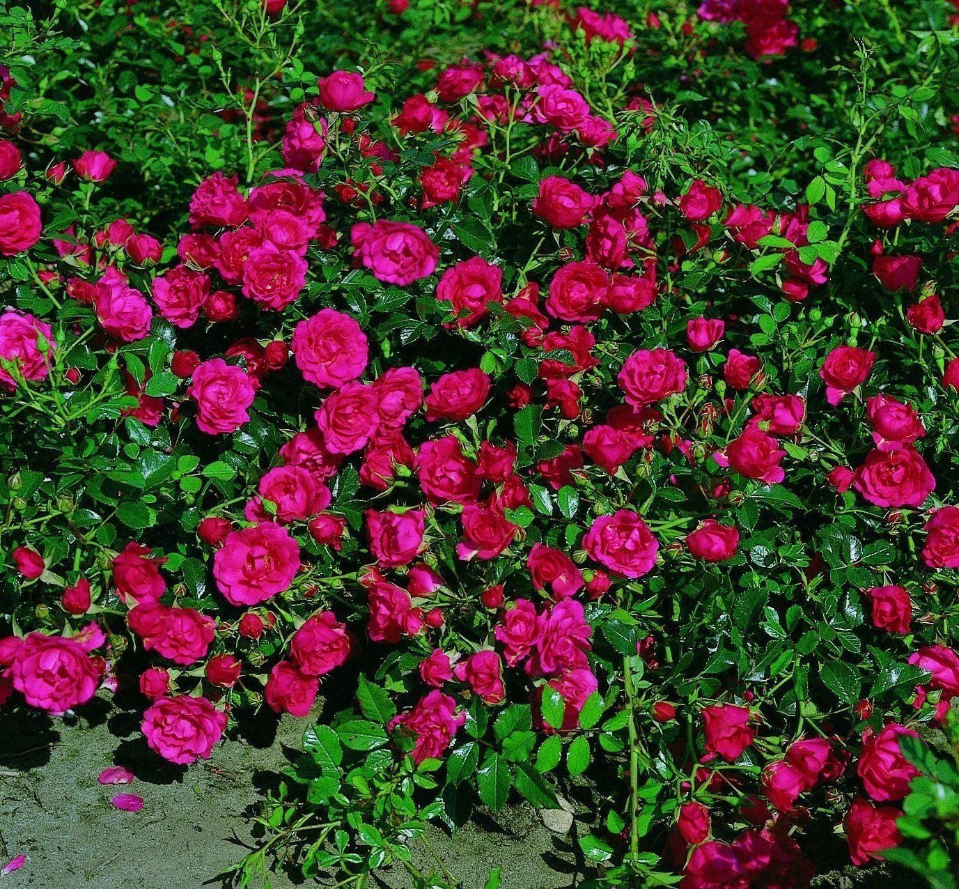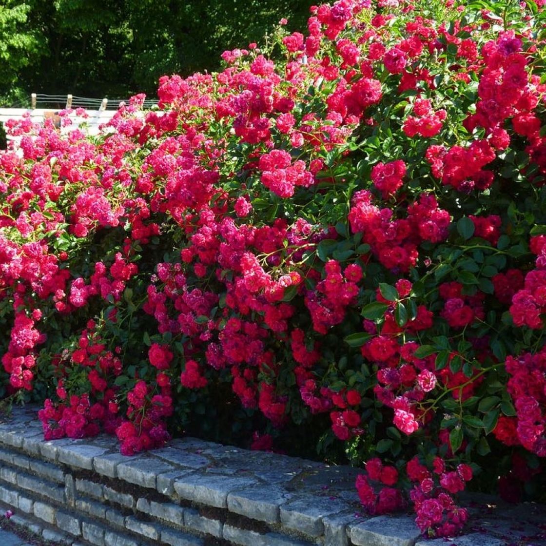 Неймовірно красива троянда, яку часто ще називають "пурпуровим килимом квітів" через рясне цвітіння. Кущ висотою 50-60 сантиметрів, а в ширину розростається до 100 сантиметрів. Листя блискуче, яскраво-зеленого кольору. Квітка густомахрова, нараховується близько 100-120 пелюсток, а в діаметрі становить 5-6 сантиметрів. Пелюстки насичено-малинового кольору. Троянда безперервноквітуча, буде радувати Вас своїм чарівним цвітінням весь сезон. Вона також має високу стійкість до хвороб і високу морозостійкість. Квітки зібрані в суцвіття по 5-15 штук.