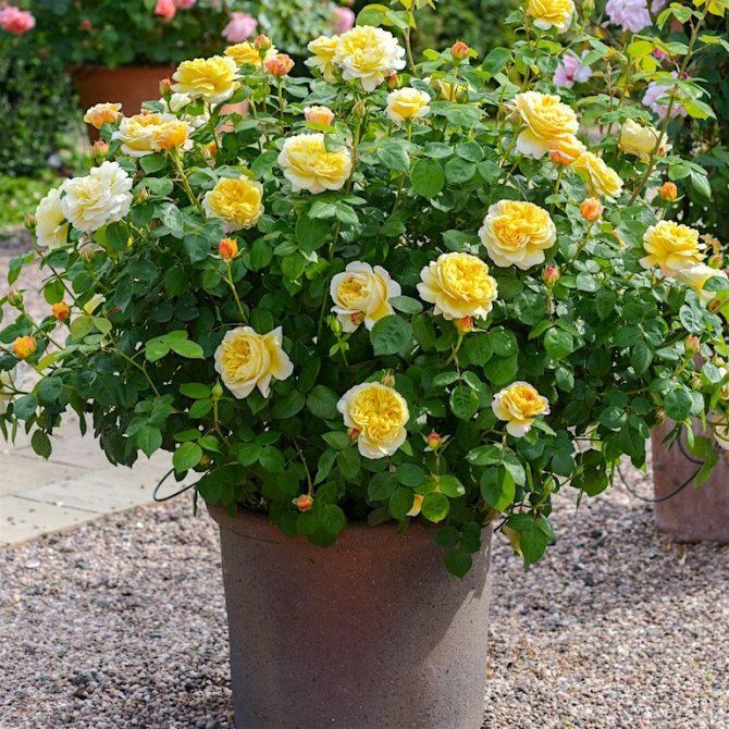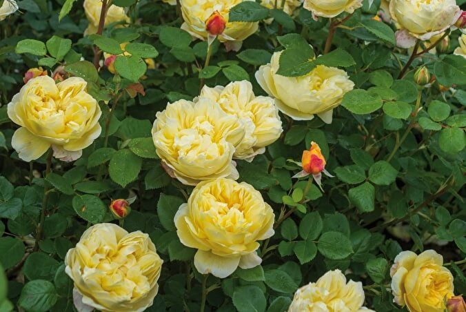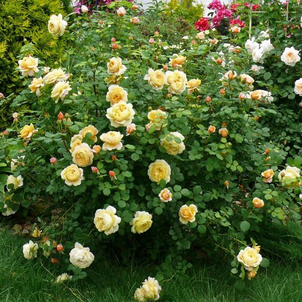Все в цій троянді ефектно, чудово і кидається в очі: і пишність куща, і прекрасні квіти на кінцях довгих пагонів. Квітки махрові, одні з найбільших серед Англійських троянд, на початку цвітіння в формі глибокої вази. Вони мають чудовий колір старого золота, іноді з лимонними або піщаними відтінками. Аромат чарівний, дуже інтенсивний, варіює між чайним і цитрусовим. Дуже гарне повторне цвітіння.