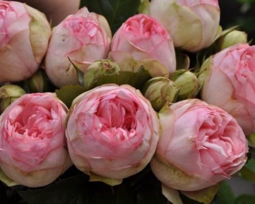Аромат легкий, приємний. Квітки дуже щільні, складаються з 40 - 45 пелюсток, зібрані в кулясті суцвіття від 5 до 9 штук. Переважає світло-рожевий, білик. Цвіте безперервно протягом усього сезону.