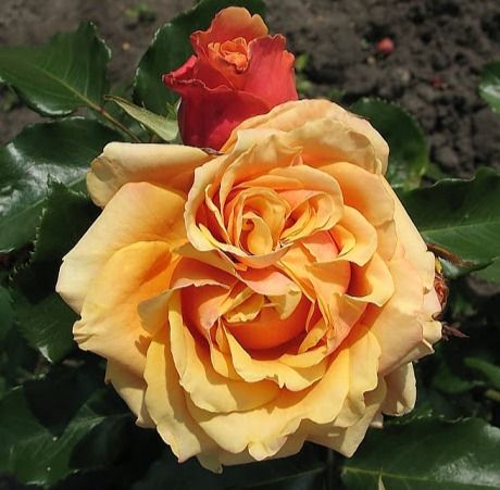Внутрішня сторона кожної пелюстки абрикосово-жовта, іноді майже мідна, в той час як зовнішня - світліша, помаранчова. На довершення до цього краю пелюсток пофарбовані більш інтенсивно, ніж серединка, вони майже гранатові. Ця невловима гра гарячих тонів, та ще на тлі темних, фактурних листків, робить Черрі Бренді справжньою красунею!