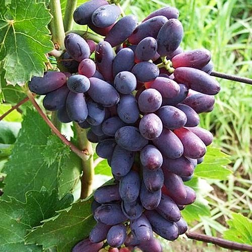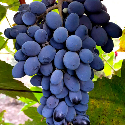 Вони темного кольору: червонувато-сині в ранній зрілості, стають повністю синіми, коли вони повністю зрілі. Грона мають конічну форму, а іноді й є плече. Їхня маса — середні вагою 200-250 г Використовується переважно як столове виноград. Морозостійкість висока: цей сорт витримує зниження температури до -28 °C. Період дозрівання: початок-середина серпня. Урожайність цього сорту висока, 200-250 ц/га. Стійкість до грибкових захворювань — середня.