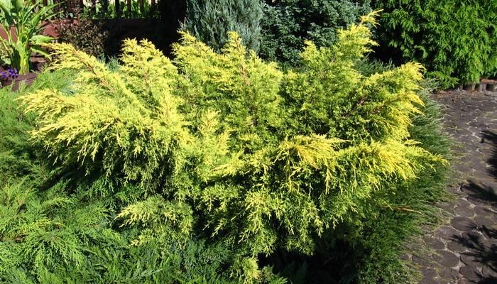 Ялівець середній "Пфітцеріана Ауреа" використовується в поодиноких і групових посадках.