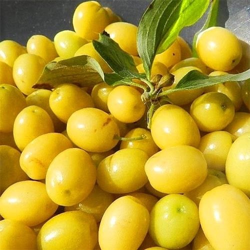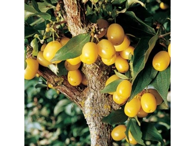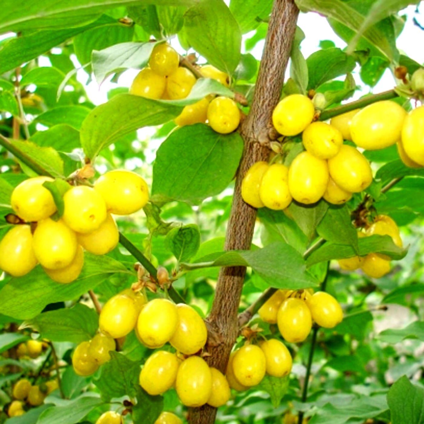 Кизил Янтарний – сорт середнього терміну дозрівання(15-20 серпня). Цей сорт кизилу має оригінальні плоди масою 4-6г, яскраво - жовтого кольору, в стиглому стані майже прозорі з тонкою шкіркою, через яку просвічується невелика кісточка . Крона дерева овально - пірамідальна, висотою до 2,0 - 2,2 метрів. Смак дуже хороший, м'якоть соковита, кислувато - солодкого смаку, ніжна, десертна. Плодоношення щорічне, стабільне. Дуже плодоносний сорт , дає рясний урожай: з 15 - річного дерева можна отримати 30 - 40 кг. Кизил Янтарний став одним з привабливих як для вживання в свіжому вигляді, так і для переробки. При дозріванні плоди осипаються, тому рекомендується зняти їх за 3 - 4 дні до повного дозрівання, і вони дозрівають при зберіганні.