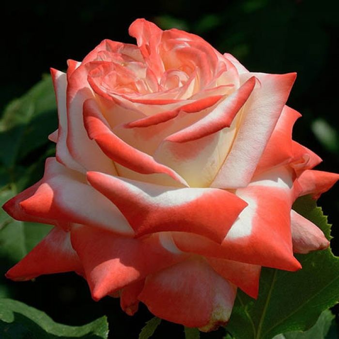 Троянда Імператриця Фарах - Imperatrice Farah - названий на честь іранської імператриці - президента Фонду проблемних дітей, засновника саду площею 6000 га в Північному Ірані. Шляхетна квітка з облямованими пелюстками. Чим більше вона буде перебувати на сонці, тим більше буде проявлятися її двоколірний вид. Розкриваються бутони  надзвичайно елегантні, біло-кремовий з карміново-червоними краями і сріблястою зворотньою стороною пелюсток, чашоподібний, з високим центром, махровий, 30 - 35 пелюсток в одній квітці, діаметр квітки 9 - 11 см, має легкий аромат.