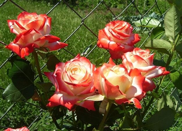 Квітки з'являються зазвичай по одному, зрідка в кистях до 5 шт, на довгих пагонах, чудово підходять для зрізання. Листя велике, блискуче, стійка до чорної плямистості, кущ сильнорослий, прямостоячий, висотою 100-150 см. Сорт невибагливий, практично не вражається хворобами, дуже декоративний, чудово підходить для озеленення та зрізання. Цвітіння починається з кінця травня і триває до самих заморозків з невеликими перервами.