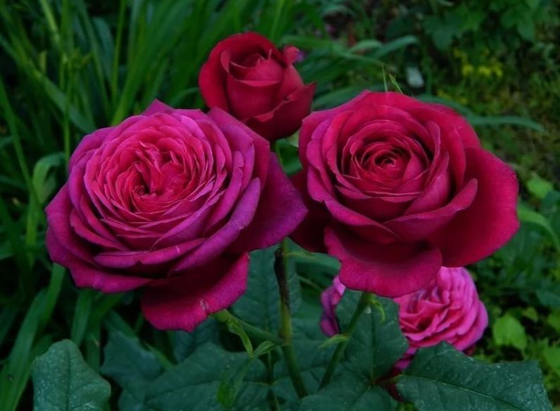 Цей сорт користується великою популярністю. Розкішні, великі, темно-малинові, у міру розпускання пурпурні з фіолетовим відтінком квітки випромінюють приголомшливий, насичений аромат благородних троянд. Чашевидні до розетковидних, густомахрові, діаметром 12 - 15 см, зацвітають величезними кистями. З одної гілочки виходить розкішний букет. Кущі округлої форми досягають висоти 120 - 150 см, а в ширину розростаються в середньому на 60-80 см. Троянда демонструє високу стійкість до хвороб, толерантна до дощу, практично не вигоряє на сонці і відмінно цвіте протягом усього сезону. Морозостійкість висока.
