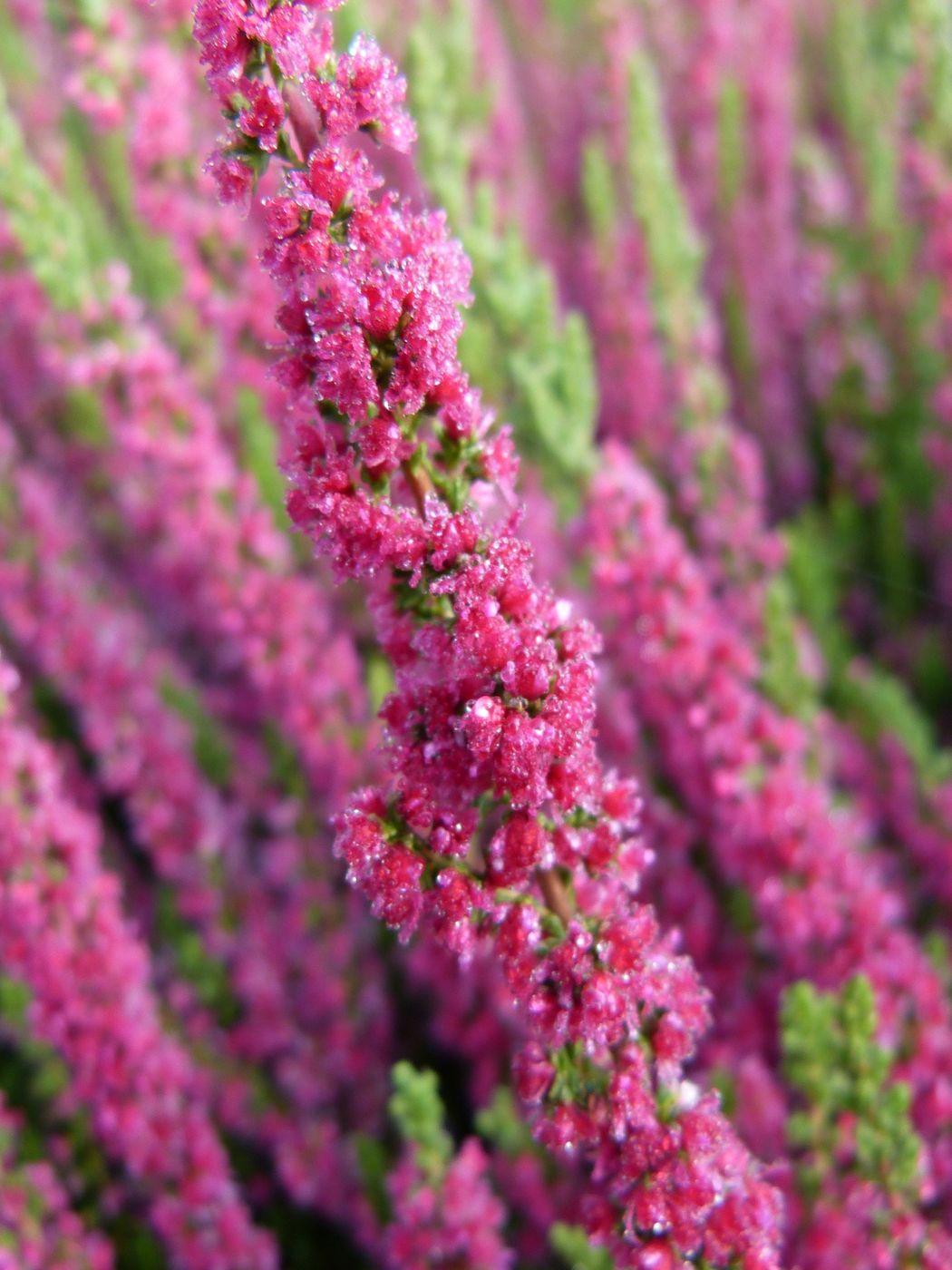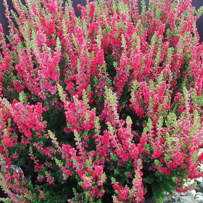 Вереск Dark Beauty - невисокий вічнозелений чагарник, який може вирощуватися і у відкритому грунті, і в контейнері. Висота рослини 30-40 см, діаметр крони до 40 см. Листя темно-зелені, вузькі, довгі 10-30 см. Квітки червоні або рожево-червоні зібрані в суцвіття довгою 10-20 см. Цвіте вереск в серпні-вересні. Він дуже ефектний в групових посадках. Кущики висаджують по три, п'ять, сім і більше рослин одного або різних сортів. На один квадратний метр беруть 6-9 кущиків, залишаючи місце для інших невеликих листяних чагарників.