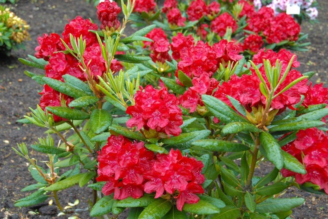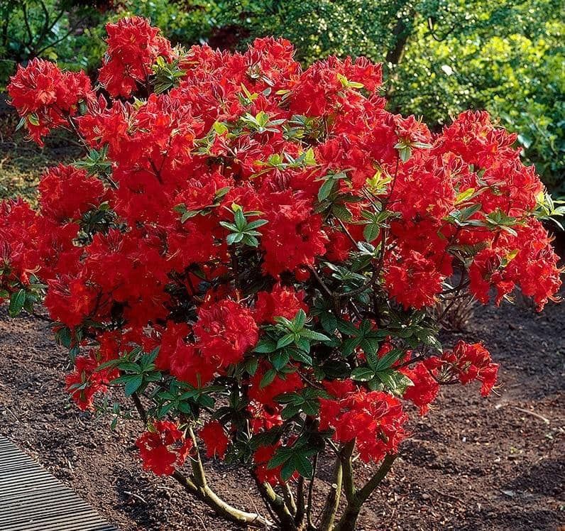 Азалія (Рододендрон) Doloroso - це листопадний чагарник з широкою і густою кроною. Доросла рослина заввишки сягає 1,5-2 м, а в ширину - 1,5 м. Цвіте азалія в кінці травня - середині червня. Квітки великі, діаметром 6-7 см, яскраво-червоного кольору, зібрані в суцвіття по 7-10 квіток, не вигоряють на сонці. Суцвіття плоске, шириною 13 см, заввишки 7 см. Азалія заворожує своєю красою в період цвітіння. Листя на чагарнику довгастої форми, при розпусканні має бронзове забарвлення, потім темно-зелений, ближче до осені стають малиново-червоними, помаранчово-жовтими.