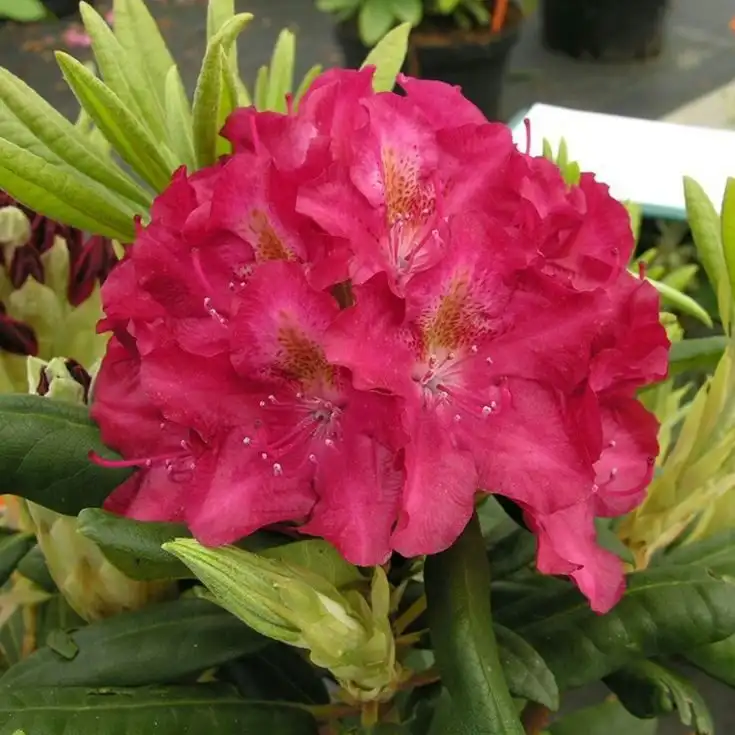 Рододендрон "Kazimierz Wielkii" - це сорт який відноситься до групи королівських рододендронів, тобто це краща якість сорту в порівнянні з іншими рододендронами, що не входять в групу королівських, має дуже великі, сильно розкриті квітки малинового кольору з жовтим плямою в центрі квітки. Цвітіння дуже рясне. Kazimierz Wielki - повільно зростаючий сорт, який виростає до 1-1.2м за 10 років. Цвіте пізніше всіх королівських рододендронів - в кінці травня - початку червня, при належному догляді дає повторне цвітіння в августе.Морозостойкость до -30 ° C. Рододендрон Kazimierz Wielki відноситься до нелістопадним рододендрони, не вимагає укриття на зиму.