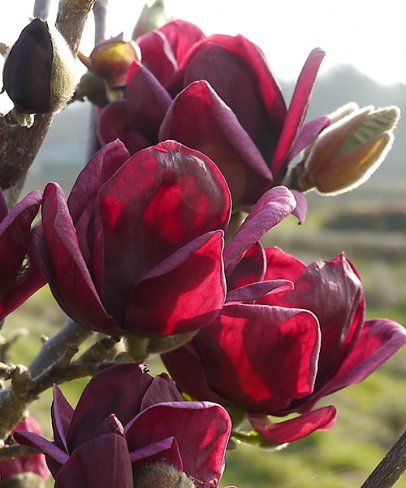 Виведений у Новій Зеландії, цей сорт магнолії, мабуть, найморозостійкіший із усіх темнозабарвлених сортів магнолій. Компактна та гілляста магнолія Джені стане справжньою окрасою навіть найменшого саду. Висота близько 3 м заввишки та 1.5 м завширшки робить магнолію ідеальною для садів будь-якого розміру. Чорно-червоний, у формі тюльпана бутон повільно розкривається в округлі квіти з 6-12 пелюстками і діаметром близько 15 см. Віддає перевагу сонячним і захищеним від вітру місцям. Цей сорт магнолії – оптимальний варіант для садів невеликого розміру. Витримує морози до -34С.