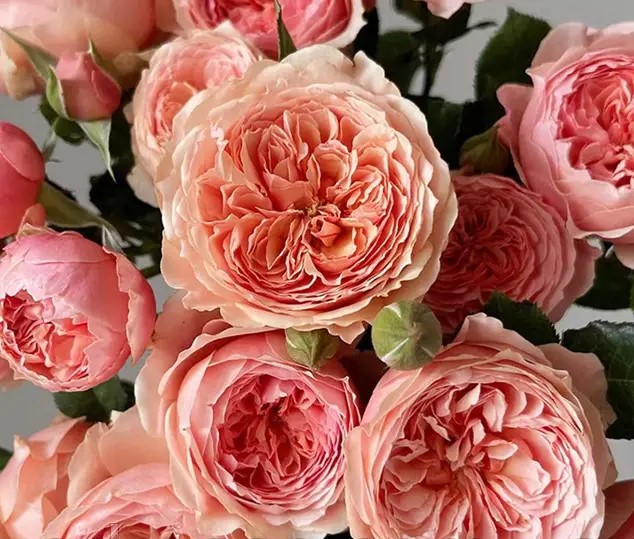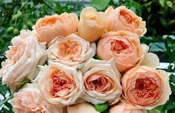 - Квітка: Густомахрова (понад 40–150 пелюсток), глибоко чашоподібної форми, діаметром 8–10 см. Квіти можуть збиратися у невеликі суцвіття по 3–5 штук.
