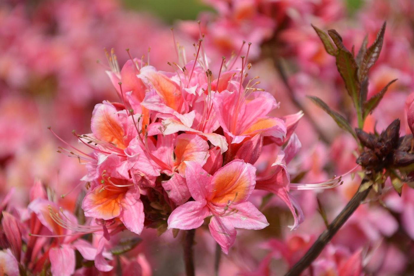 Азалія Пінк Делайт - розлогий кущ округлої, але кілька пухкої форми. Однак рослині легко надати потрібну форму. Укорочені гілки слухняно приймають зазначений напрямок і швидко відростають після обрізки. Навесні пагони одночасно покриваються зеленим пухнастим листям і яскравими рожевими квітками. Азалія Pink Delight прикриє непристойну стару споруду в саду, криницю або північну стіну будинку. Особливість сорту - відсутність нав'язливого запаху, а значить, вона відмінно підійде тим, у кого алергія на цвітіння або висока чутливість до солодких ароматів. Осіння азалія - це багряно-червоний або повністю жовтий чагарник, опадає з першими заморозками.